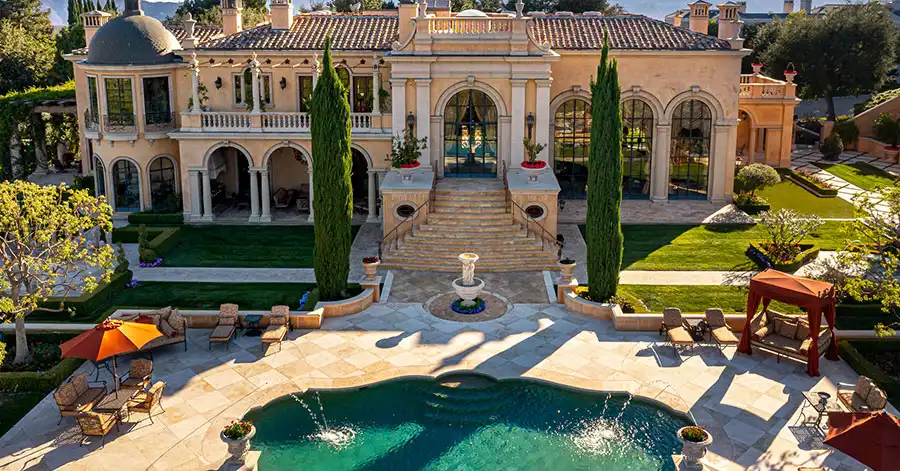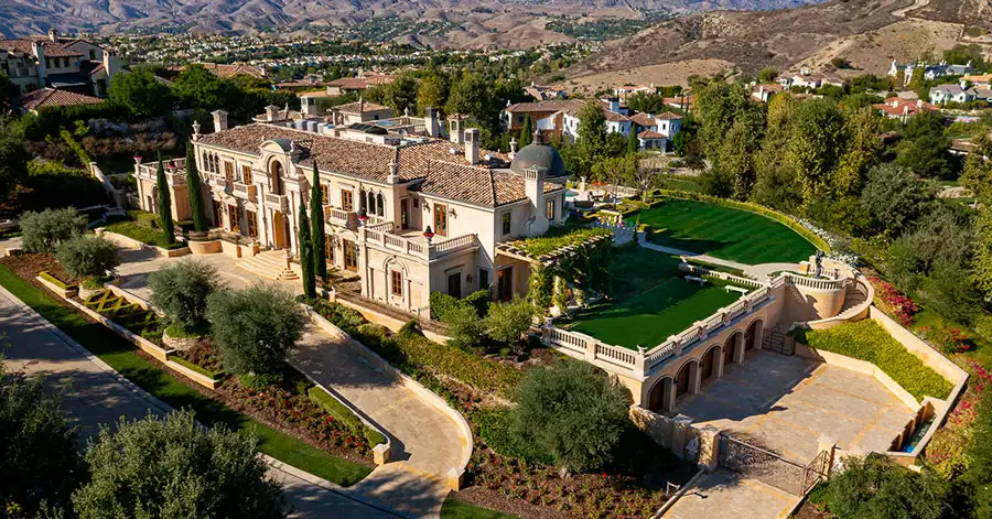 Built over six exacting years by Robin Gibson, founder of the St. Tropez suntan product line, this Italianate palazzo in guard-gated The Estates at the Oaks in Calabasas would be right at home on the shores of Lake Como.